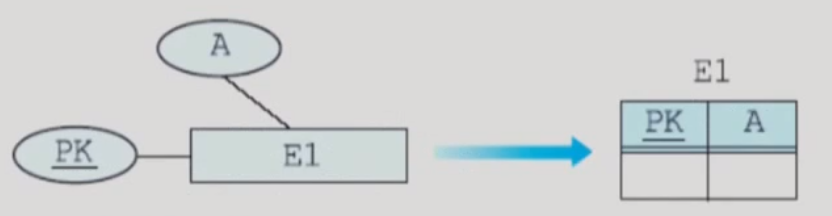 - 관계 타입 R이 가지고 있는 모든 단순 애트리뷰트(복합 애트리뷰트를 갖고 있는 경우에는 복합 애트리뷰트를 구성하는 단순 애트리뷰트) 들을 릴레이션 R에 포함시킴