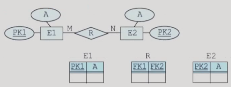 - 2진 M:N 관계 타입 R에 대해서는 릴레이션 R을 생성함