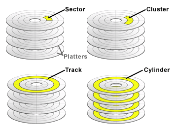 - 여러 개의 디스크 면 중에서 같은 지름을 갖는 트랙들을 실린더라고 부름