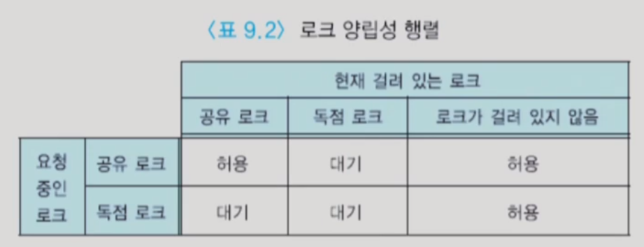 - 트랜잭션에서 읽을 목적으로 데이터 항목을 접근할 때는 공유 로크(S-lock, Shared lock)를 요청함