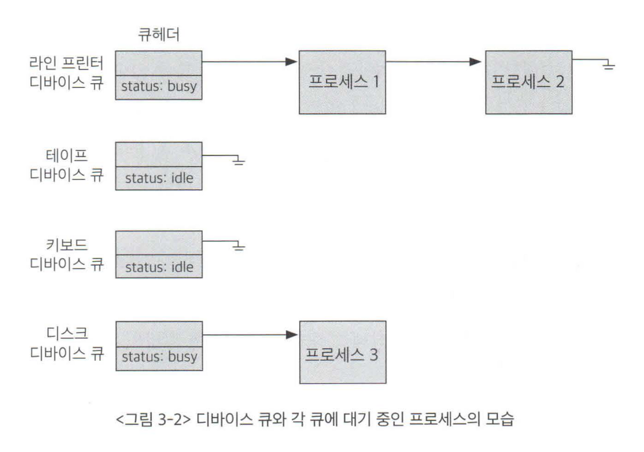 - 동기성(synchronization)을 보장하기 위해 장치마다 큐를 두어 요청된 순서대로 처리할 수 있도록 한다.