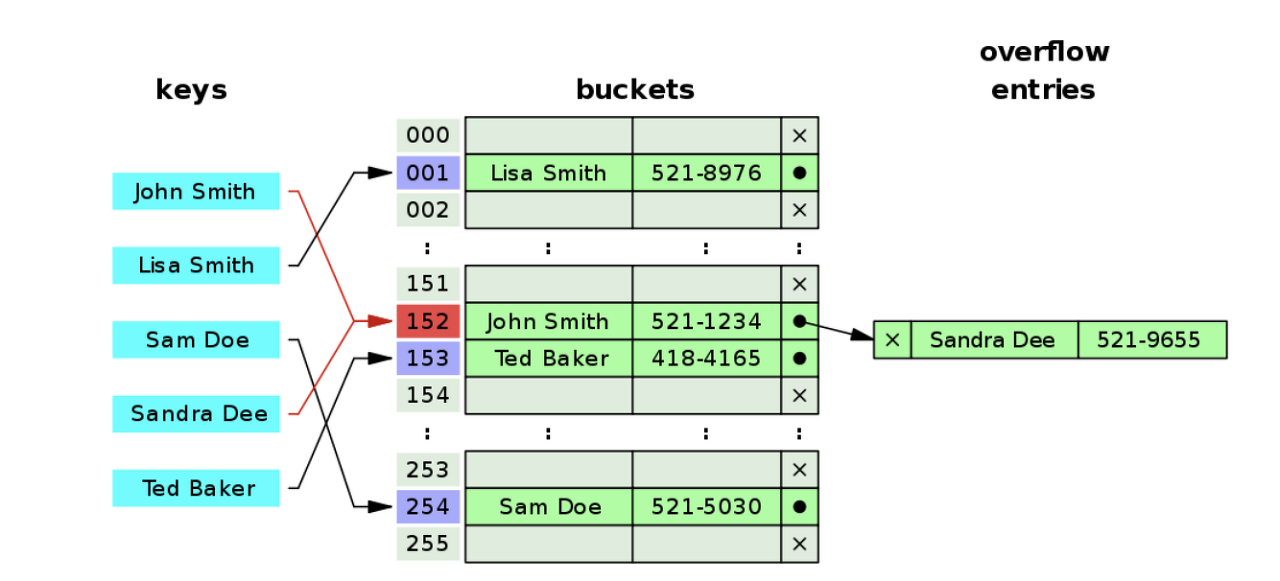 - ex) "Sam Smith"와 "Emily Kim" 을 해시 함수에 넣었을 때 같은 결과가 나오는 경우