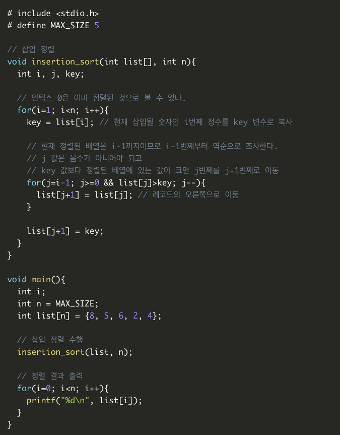 key = list[i]; // 현재 삽입될 숫자인 i번째 정수를 key 변수로 복사